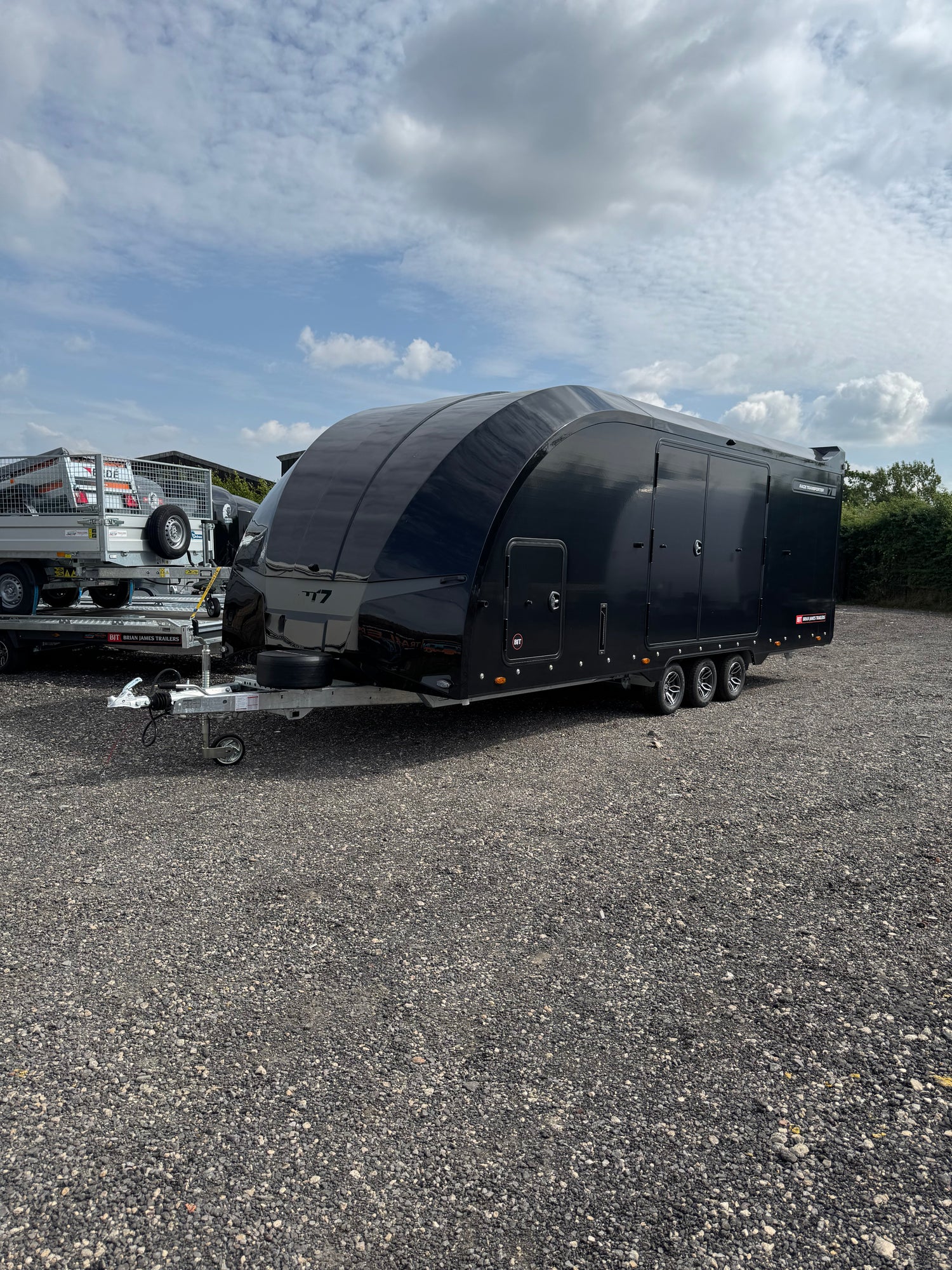 The Race Transporter 7 is the flagship enclosed trailer from Brian James – designed for professional motorsport, prestige vehicle transport, and anyone demanding the very best. With a 6.0m x 2.3m bed, triple-axle design, and 3.5T gross capacity, this model delivers top-tier performance, cutting-edge features, and exceptional usability.