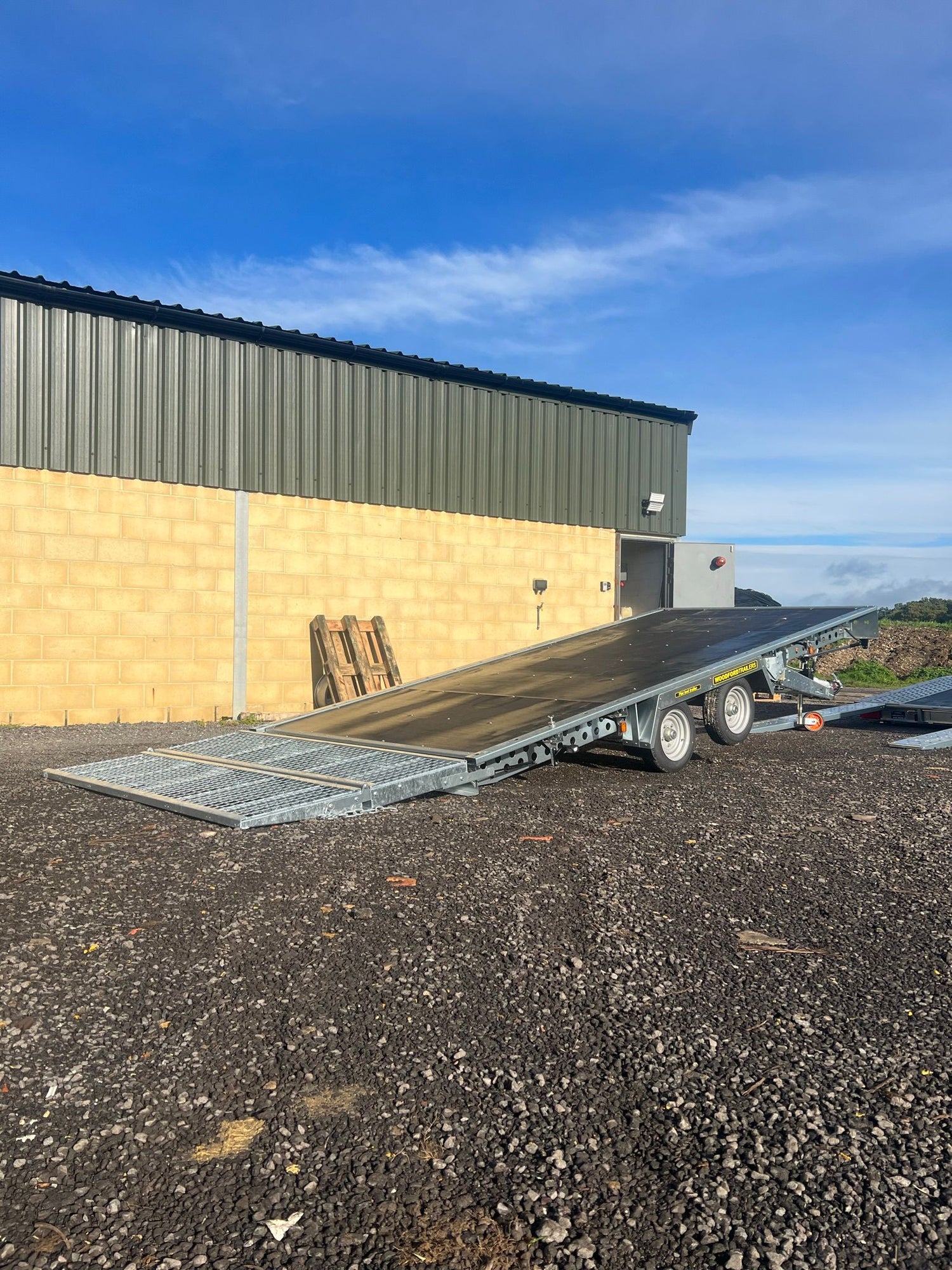 Car Transporter Flat Bed Tilt Bed Trailer Hire - Woodford 14ft Wide Body is backordered and will ship as soon as it is back in stock.